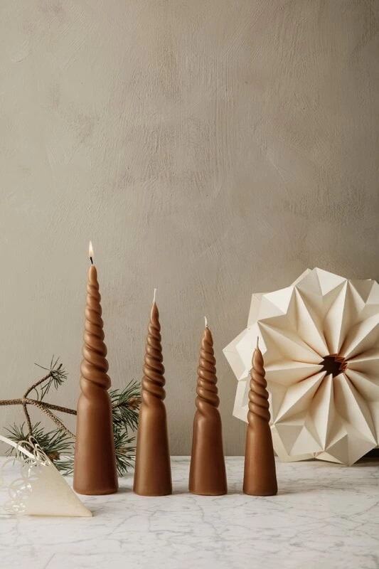 Die Twisted-Kerzen von ferm LIVING sind handgedrehte und kegelförmige Kerzen, die Ihre Einrichtung bereichern. Mit vier unterschiedlich großen Kerzen können Sie eine interessante, waldähnliche Szene schaffen oder sie als Adventskerzen in der Wartezeit vor Weihnachten verwenden. Verspielte Paraffinkerzen bringen das ganze Jahr über auch individuell Stimmung in die Abende.