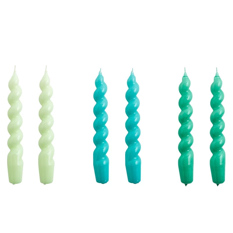 Hay Spiral Kerzen, 6 Stück, Mintgrün – Aquamarin – Grün
