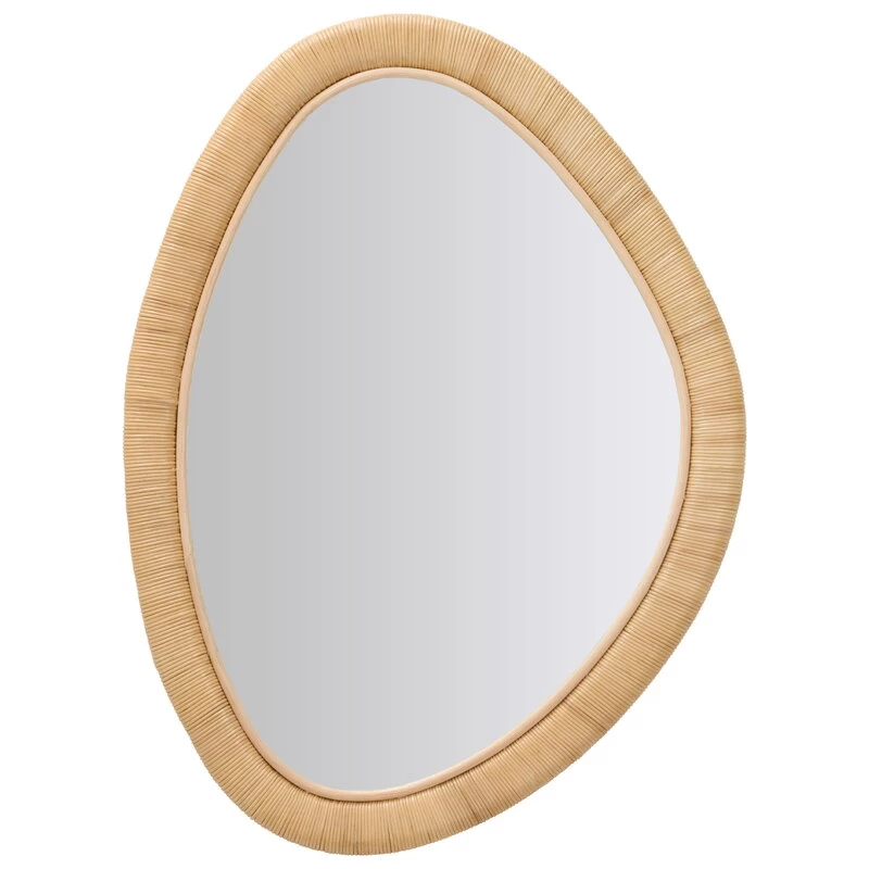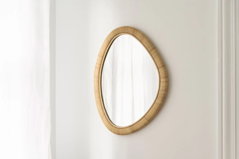 Der Malou-Spiegel von Sika-Design besticht durch seine weiche, asymmetrische Form und den handgeflochtenen Rattanrahmen. Das natürliche indonesische Rattan unterstreicht die organische Form des Spiegels und macht ihn zu einer schönen, langlebigen Ergänzung für jede Einrichtung. Der Malou-Spiegel kann beispielsweise im Flur, im Ankleidebereich oder im Wohnzimmer aufgehängt werden und fügt sich mühelos sowohl in klassische als auch in moderne Interieurs ein.