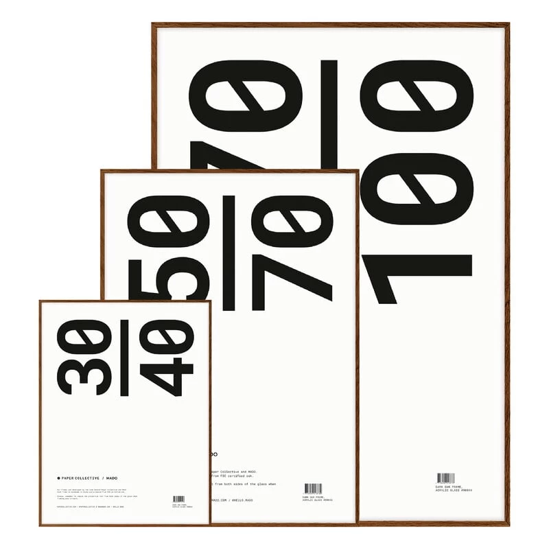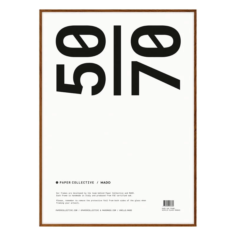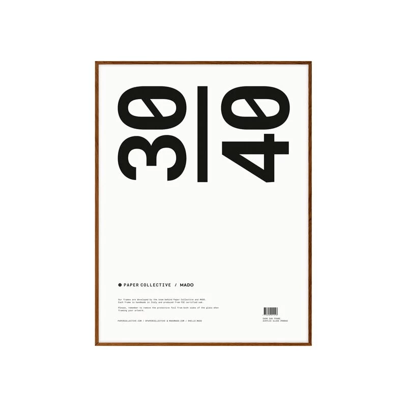 Der Rahmen von Paper Collective besteht aus dunkel beschichtetem Eichenholz und Plexiglas, einem robusten Material, das wie normales Glas aussieht, aber so haltbar und sicher ist wie Kunststoff. Der raffinierte Rahmen eignet sich perfekt zum Einrahmen von Postern und Kunstwerken.
